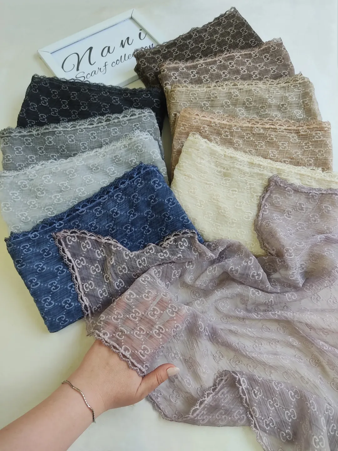 شال نخ حریر دور دانتل گوچی