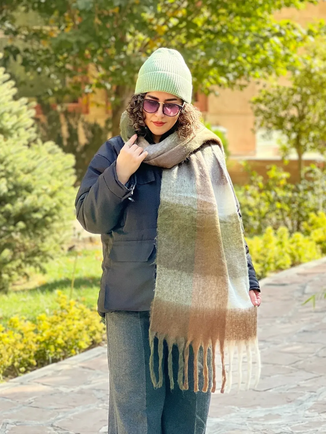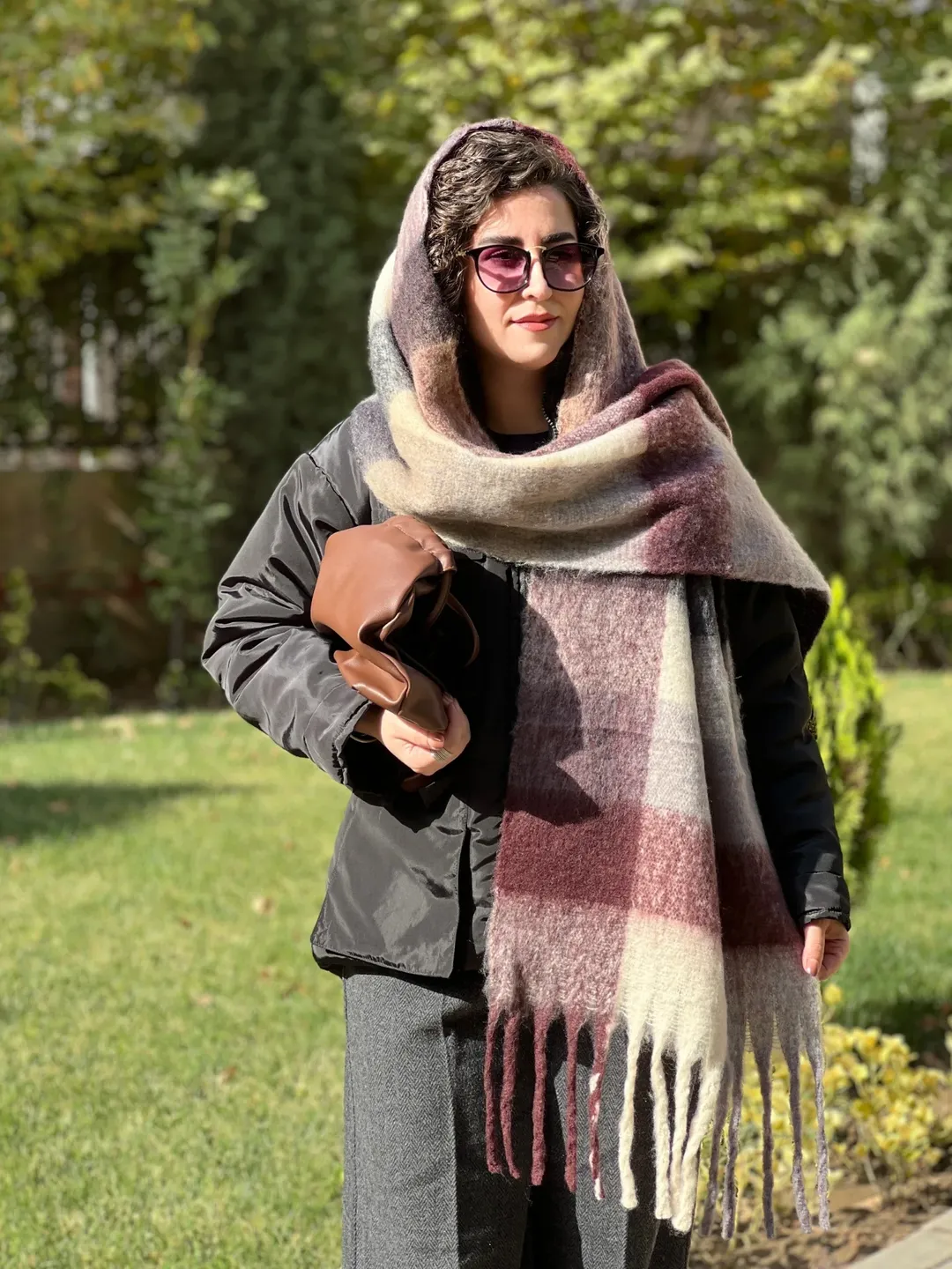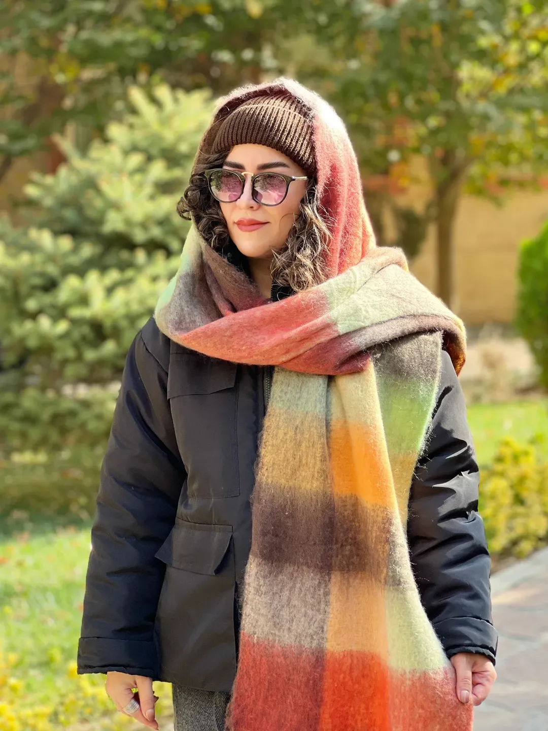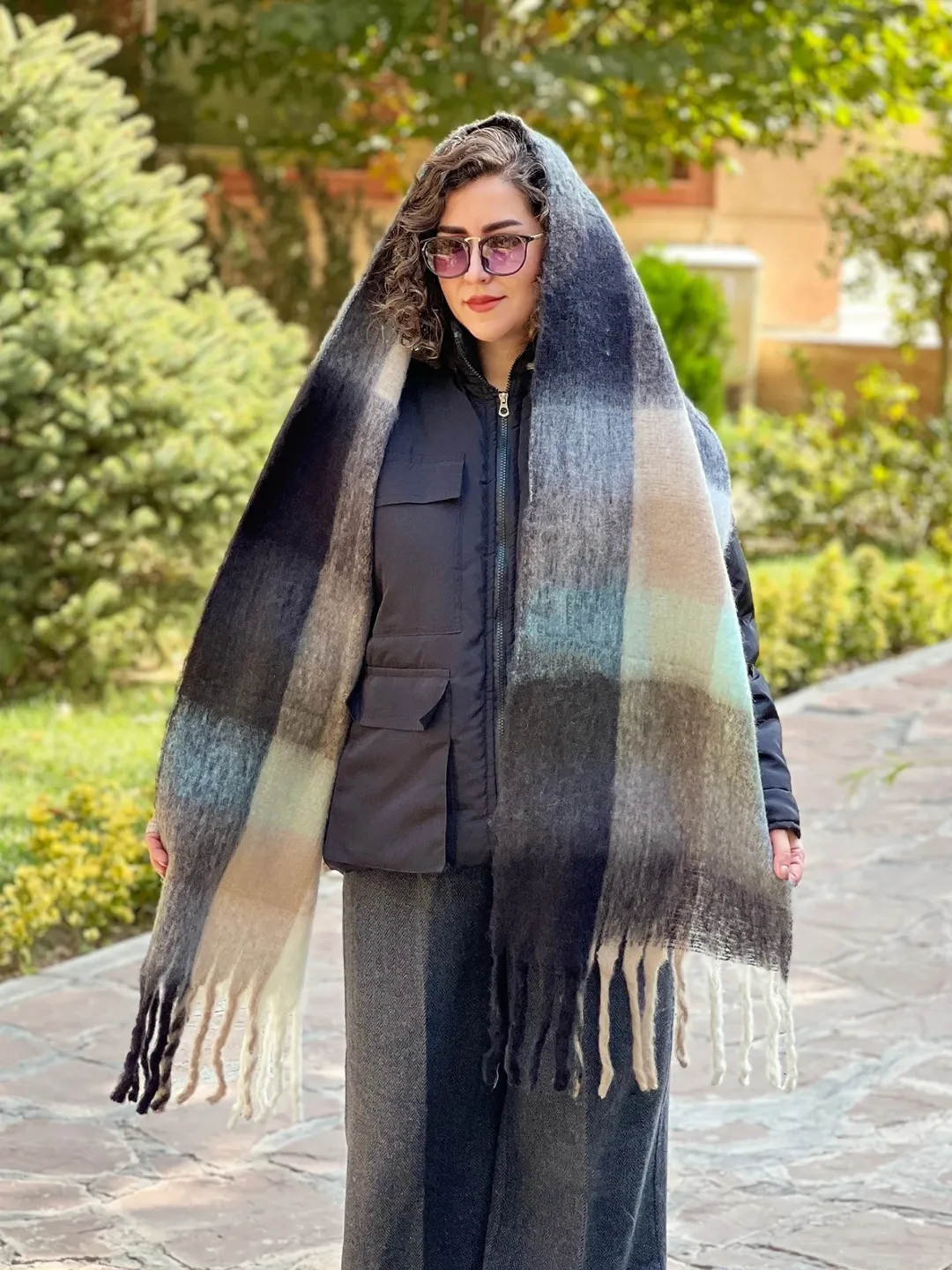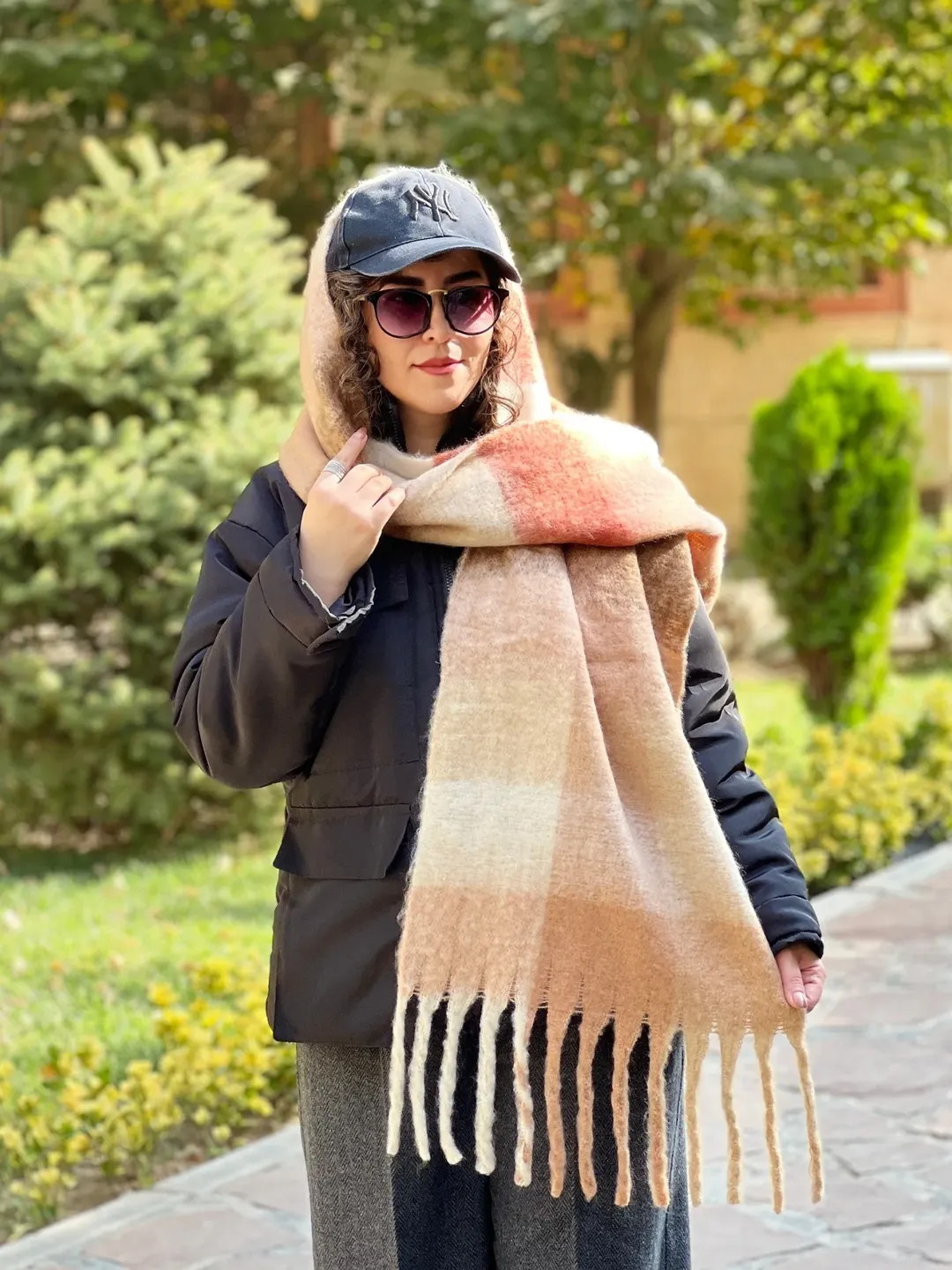 بیگ اسکارف پینترستی، گرم و نرم، مناسب برای استایل با پافر، کاپشن، بارونی، ترنچ کت و پالتوی چرم.