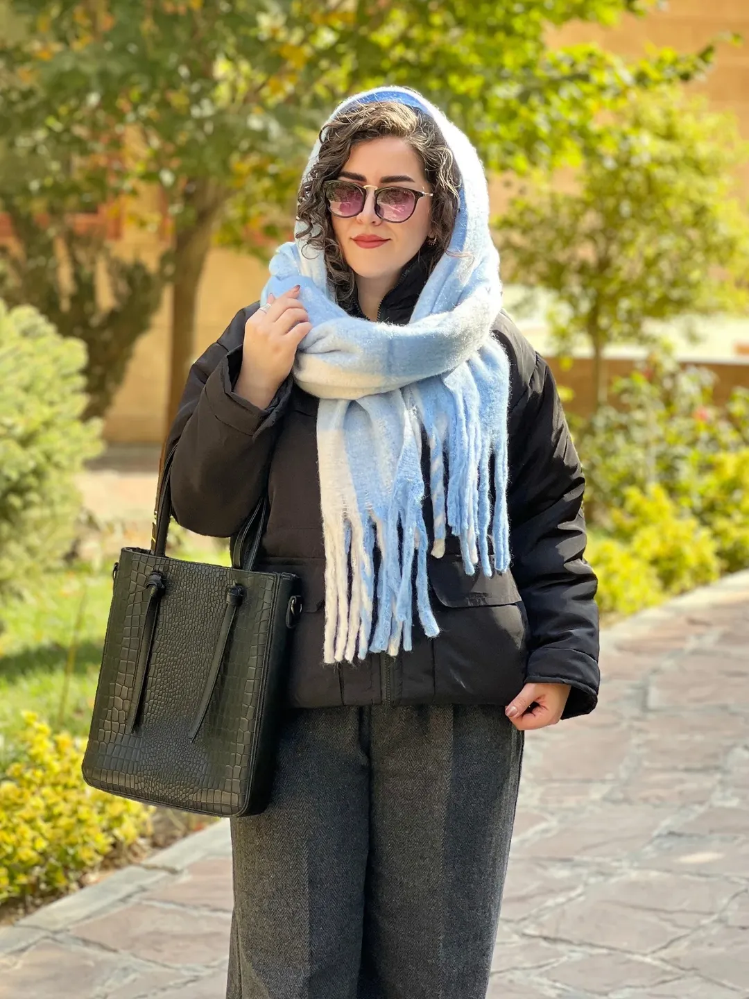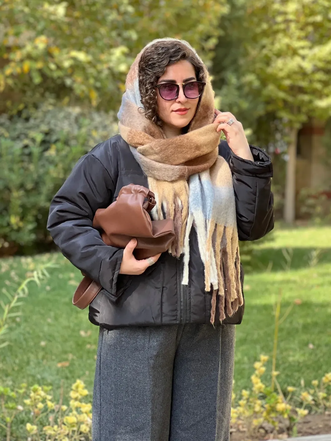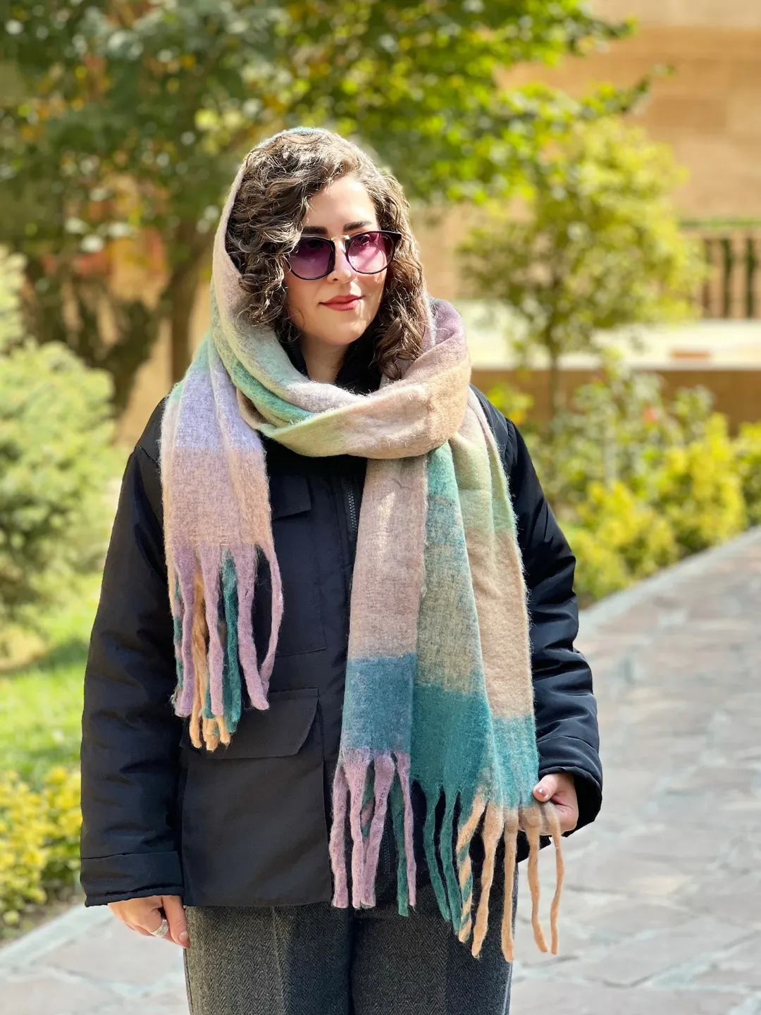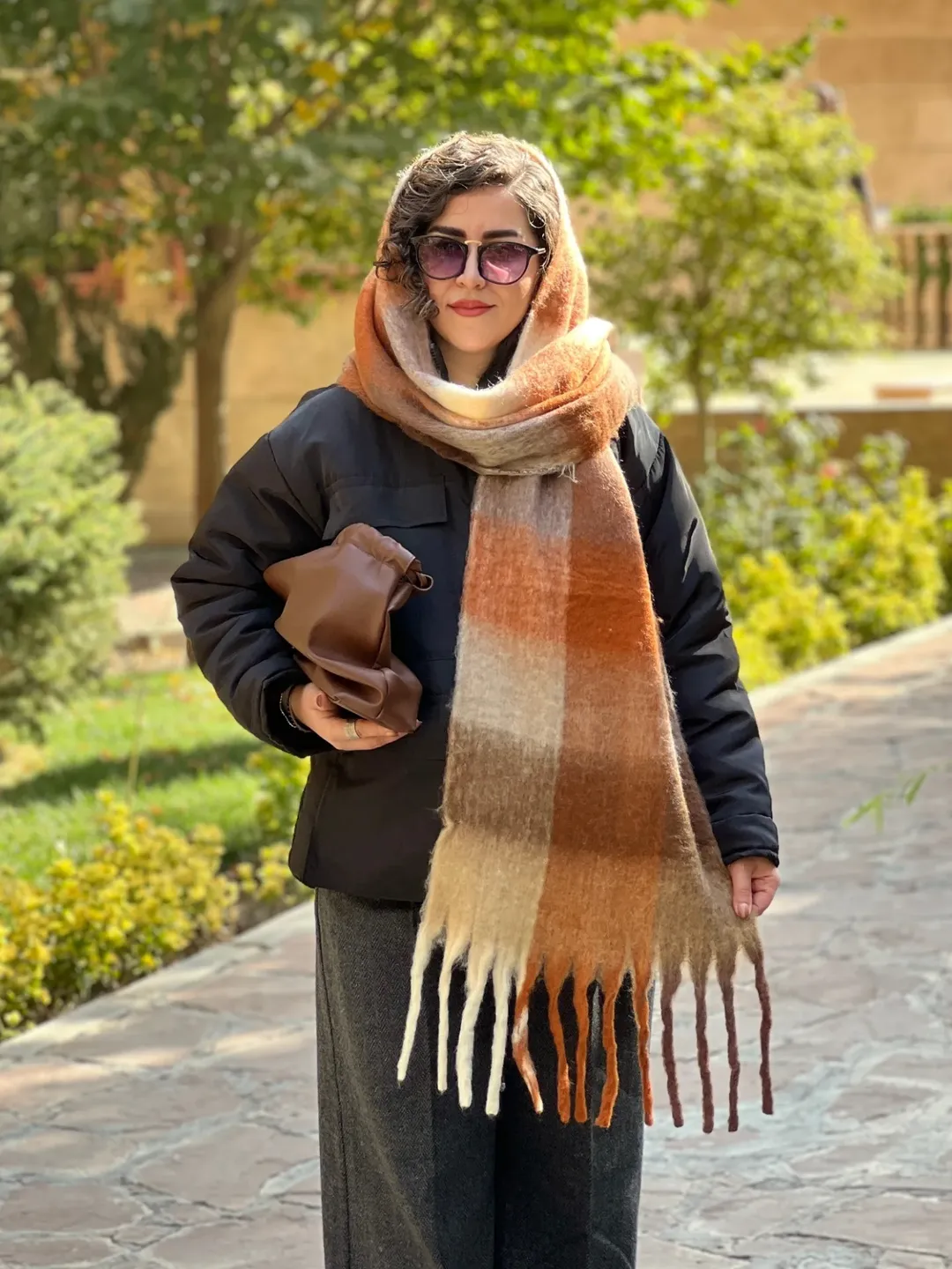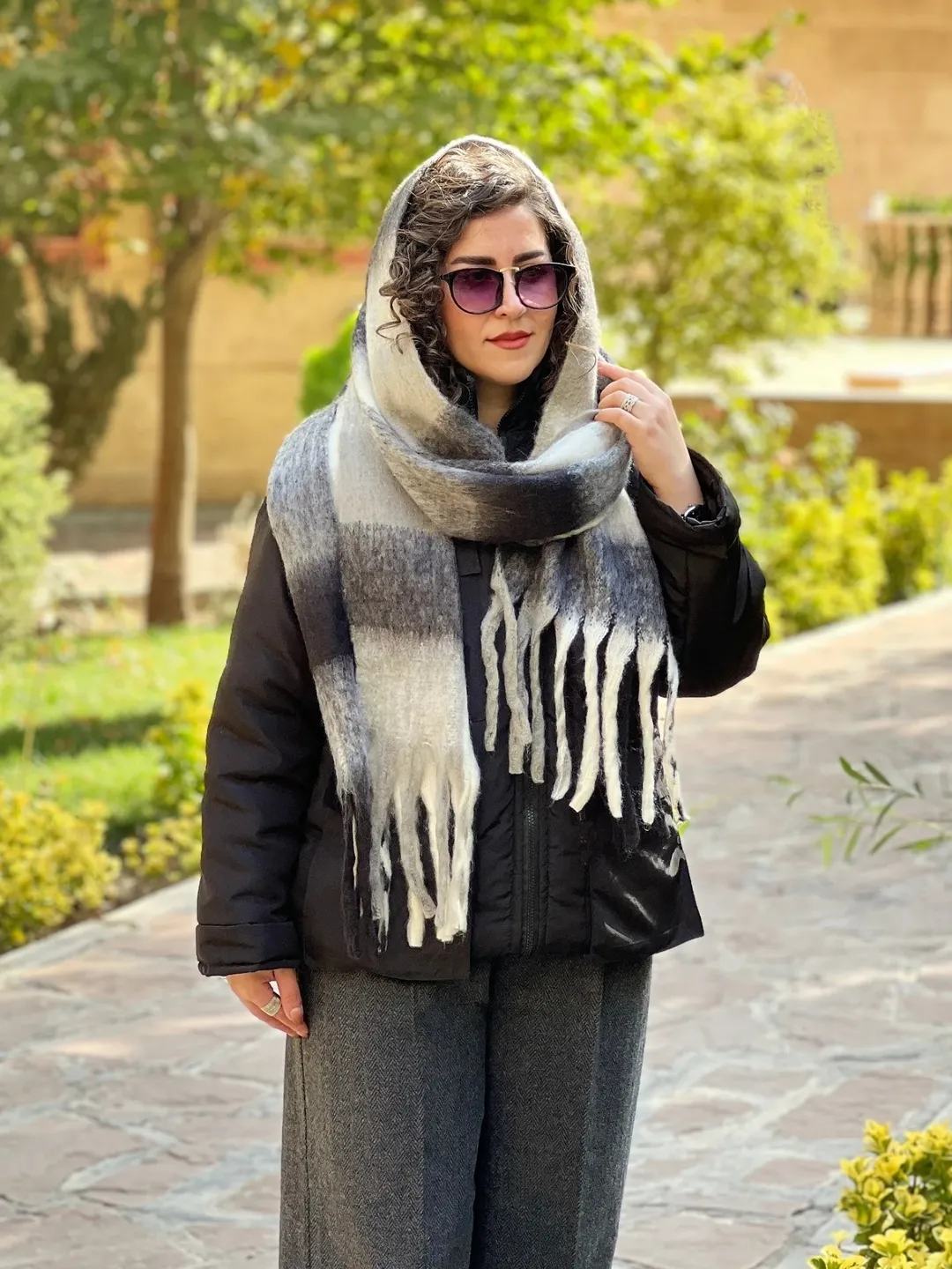 بیگ اسکارف پینترستی، گرم و نرم، مناسب برای استایل با پافر، کاپشن، بارونی، ترنچ کت و پالتوی چرم.