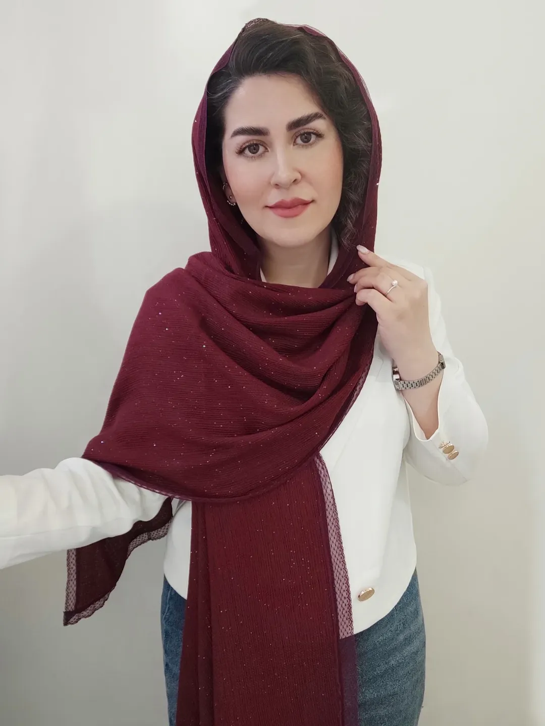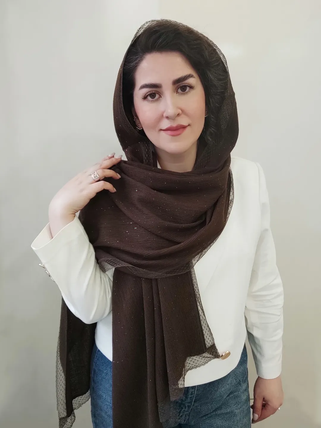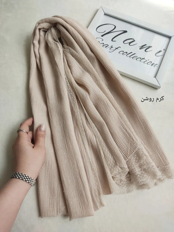 شال پلیسه شاین دار دور دانتل یک شال فوق العاده نرم و باکیفیت با ایستایی عالی دور تا دور شال دانتل داره،یک روی شال اکلیل داره که داخل بافت پارچه ست و به هیچ وجه ریزش نداره و روی دیگه شال ساده ست .بسیار سبک و راحته و اصلن سر نیست👌🏻 ما همیشه بهترین ها رو برای شما انتخاب میکنیم. ابعاد ۷۵ در ۲ متر