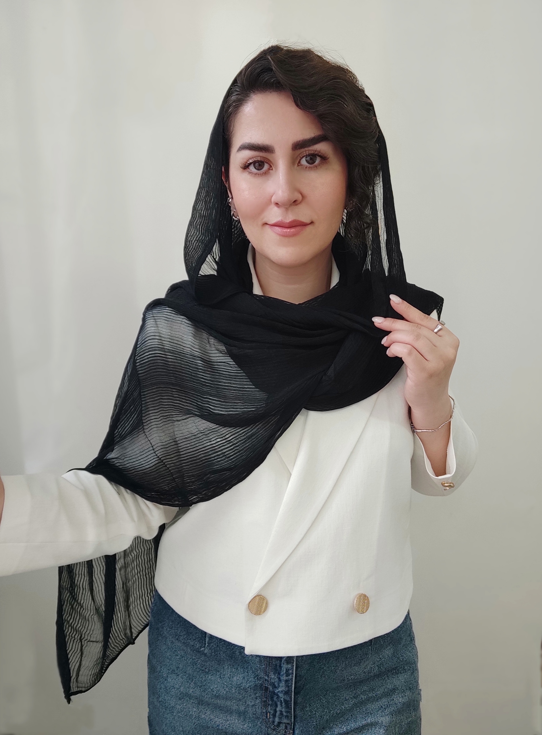 هم میتونید اسپرت و روزانه استفاده کنید و هم مجلس و مهمانی استایل کنید،اصلن سر نیست و دولای شال مو دید نداره